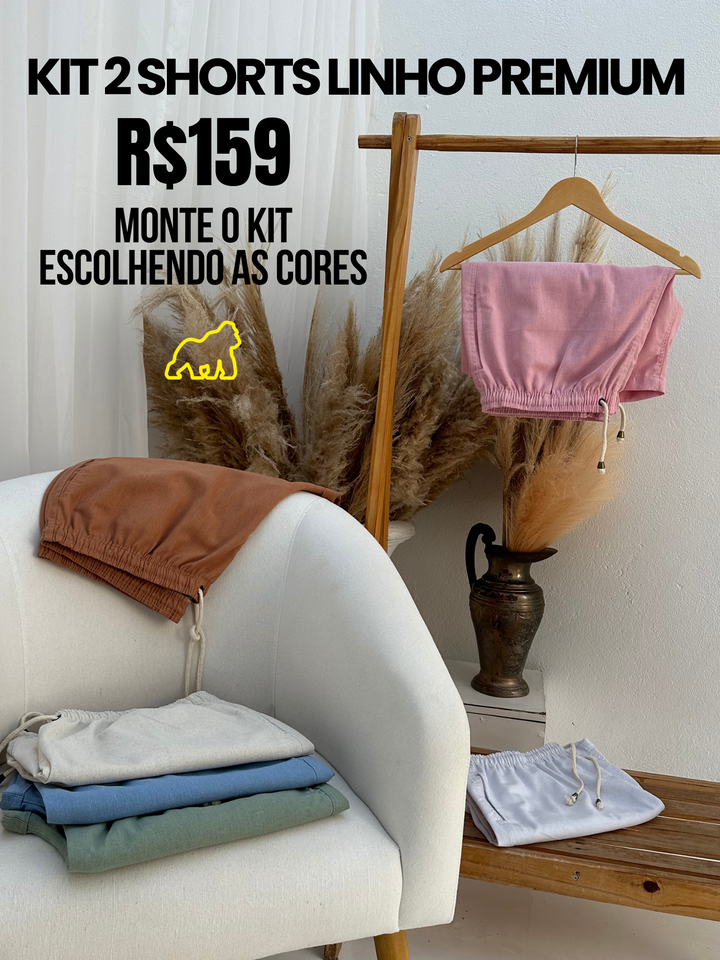 KIT 2 SHORTS DE LINHO CASUAL PLUS MASCULINO 159,90 - ESCOLHA AS CORES