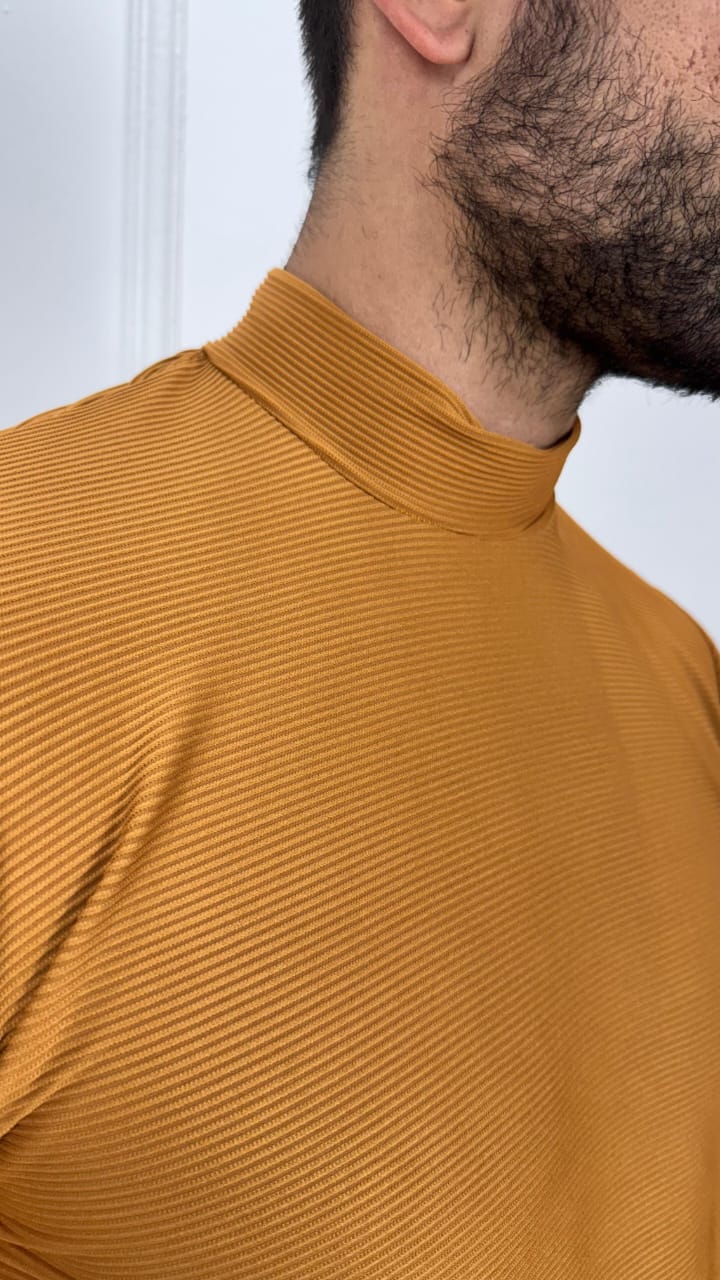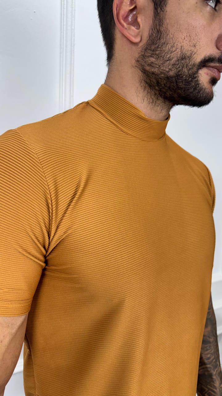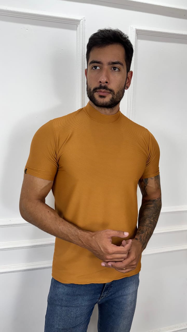 CAMISA MANGA CURTA GOLA ALTA CARAMELO