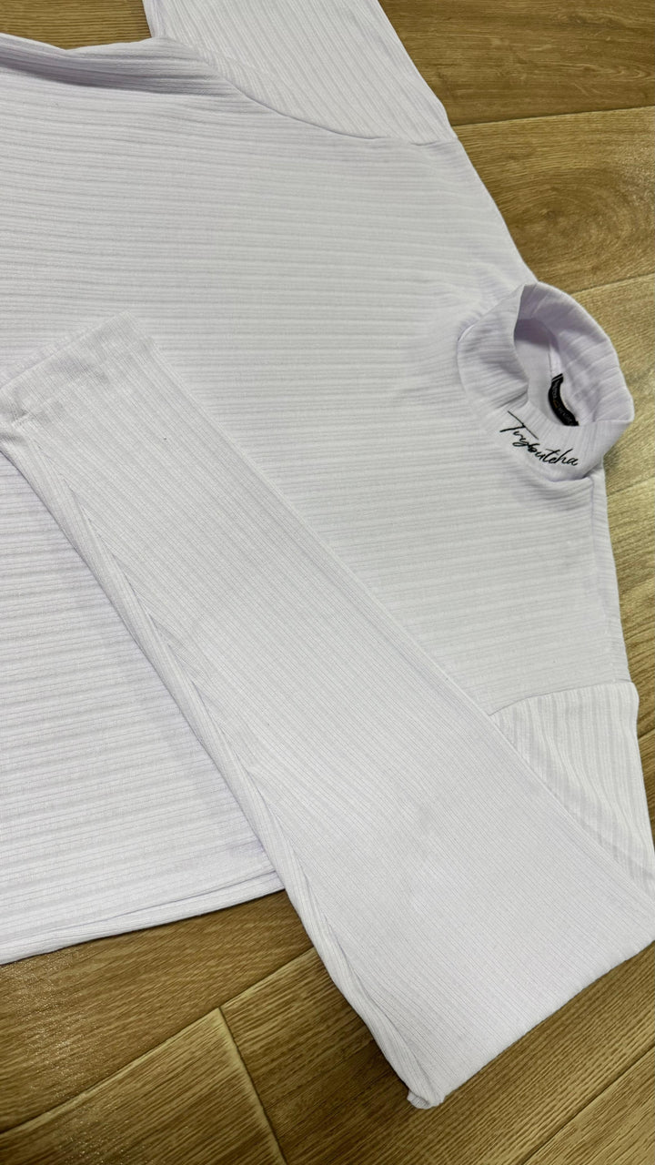 CAMISA MANGA LONGA GOLA ALTA CANELADA COM ELASTANO - BRANCA