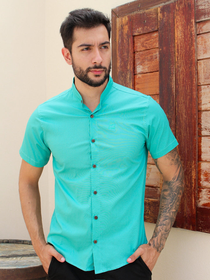 CAMISA SOCIAL GOLA PADRE VERDE ÁGUA