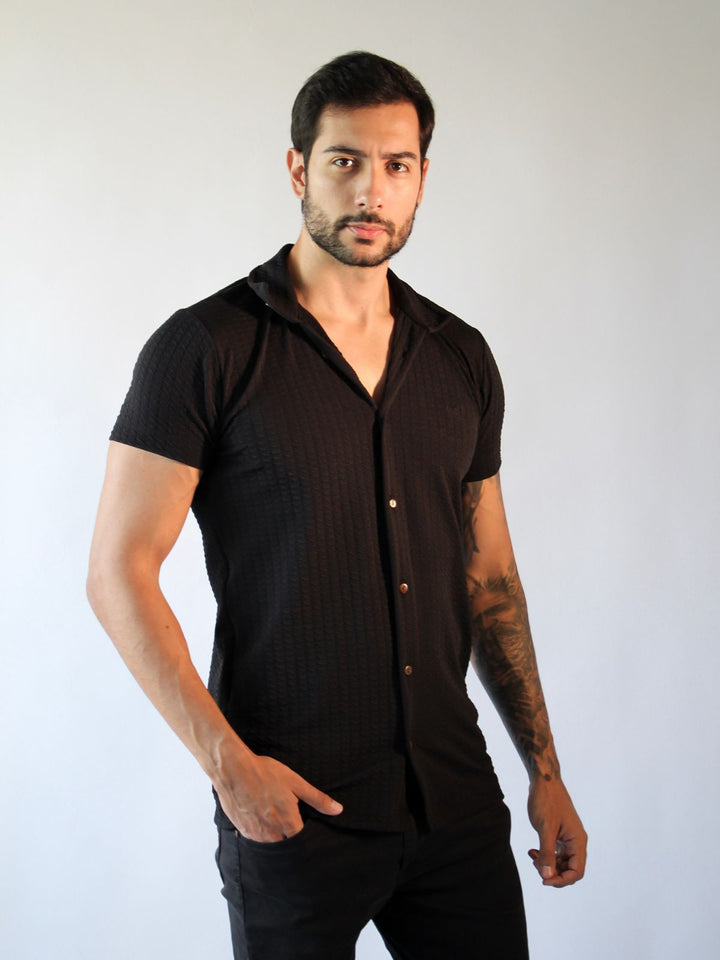 CAMISA SOCIAL TEXTURIZADA PRETA