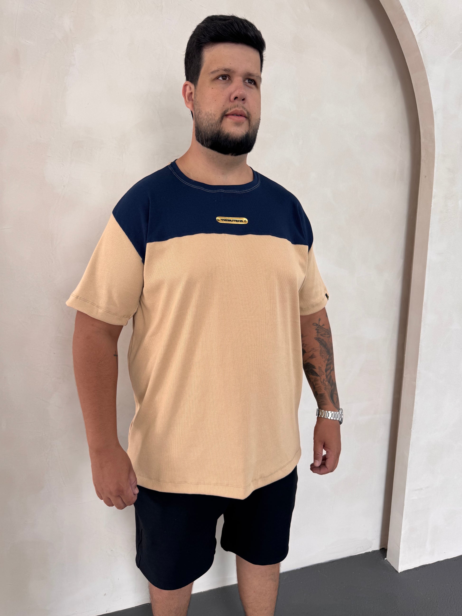 Camiseta Masculina Street – Malha Canelada Bicolor
