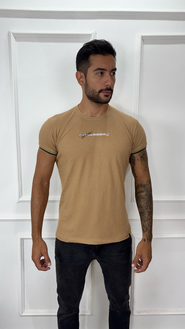 CAMISETA PREMIUM DETALHE NA MANGA BEGE