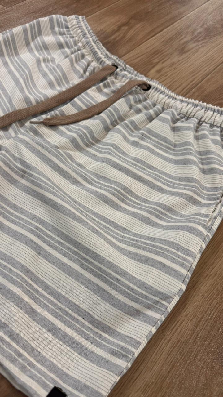 SHORT LINHO LISTRADO OFF WHITE
