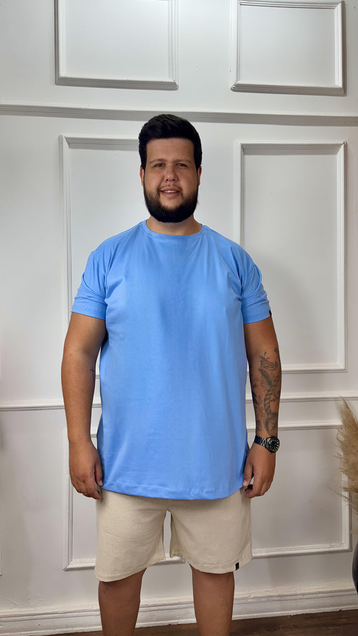 T-SHIRT BÁSICA AZUL CÉU CLARA - PLUS SIZE